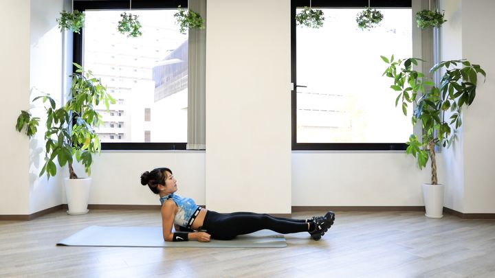 最後は仰向けのプランクです。腰が落ちてしまわないよう注意してください。