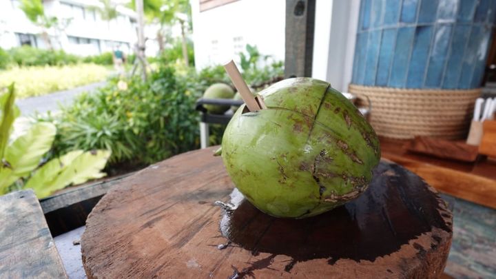 朝散歩に疲れたタイミングで、フレッシュなココナッツジュースを発見! 薄めたポカリスエットのような優しいお味。飲み終えた後は蓋を取り、スプーンで果肉をいただきました。ぷるんとした不思議なテスクチャーに病みつきになる方も多いはず。フレッシュブコ(ココナッツジュース)は250ペソ(約¥660)。