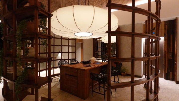 ロビーはジャパンディな雰囲気。ウェルカムドリンクには、施設内で育てられているレモングラスを使用したコールドドリンクが用意されていました。