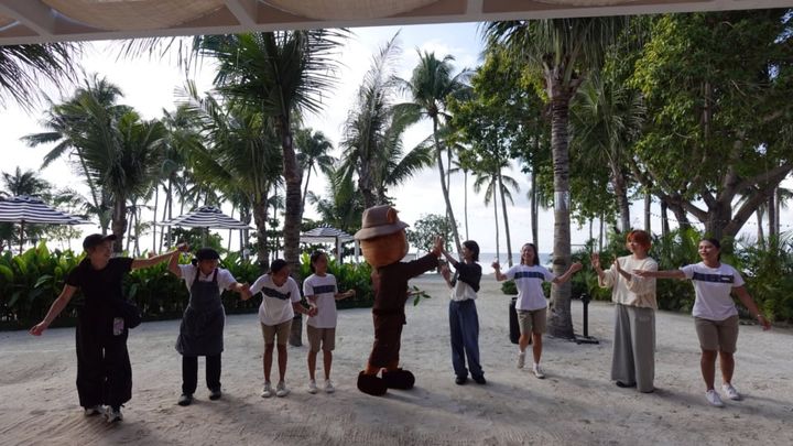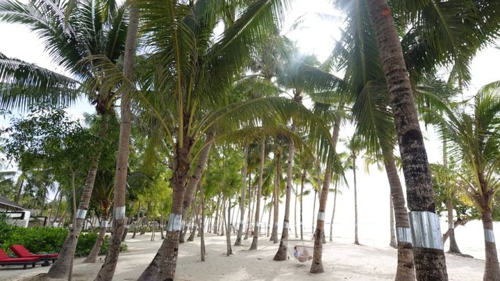 この日の宿泊先は、【サウス パームス リゾート アンド スパ パングラオ】。白砂のプライベートビーチを有する、五つ星のビーチリゾート。広大な敷地には客室が点在し、エントランスを抜けた瞬間、視界いっぱいに広がるオーシャンビューに思わず歓声が上がります。