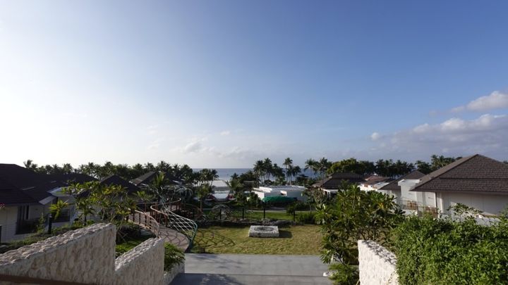 翌朝早起きし、スタッフみんなで施設内を朝散歩。夜には見えなかったエントランスからのビューは、どこからみても海が広がる圧巻のパノラマビュー。