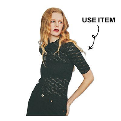 素肌に直接ふれても心地よい、伸縮性のあるレースを使用。ハイネックかつコンパクトな形で、黒タートルのように着まわし上手。甘さと色気を含んだ表情を生かして、タフな黒スタイルに抜け感を。