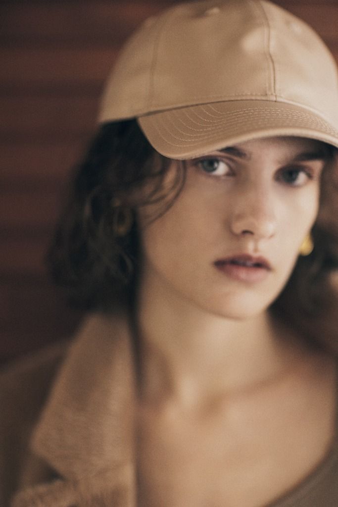 ヌーディな配色に必要な重みをレザーキャップで小さくカバー