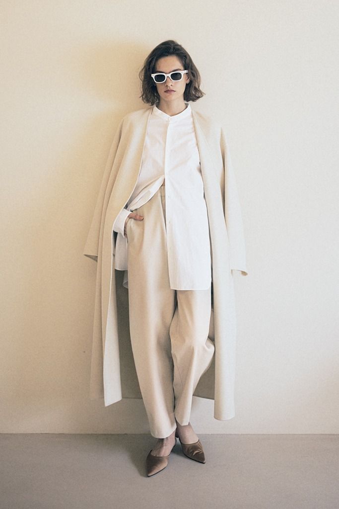 「一見派手に感じる白のレザーも、ワントーンでまとめて「色を埋もれさせる」とぐっと身近な存在に。真っ白ではない色みやゆるい形で、レザー自体も脱力感があるほうが、さらにとり入れやすくなるはず。シャツやウールなど素材を変えると、白一色でもコンサバになりすぎない」(樋口さん)