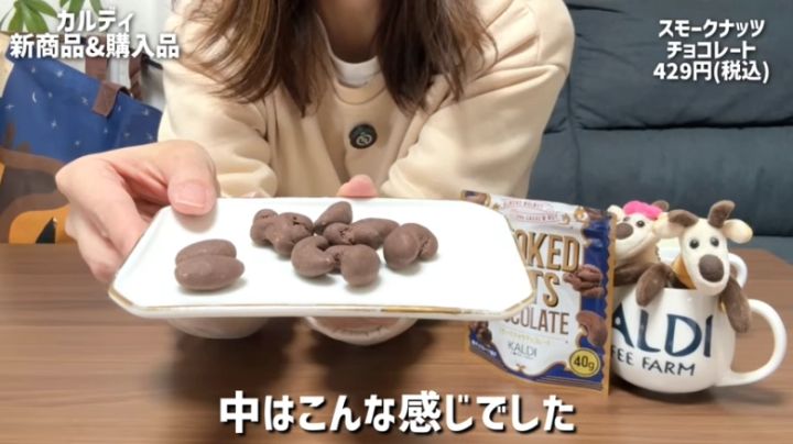 食べるとびっくり!ナッツの香ばしさと燻製の香りがふわ~っと鼻に抜けて、クセになる♪甘さ控えめのチョコレートは高級感があって、まさに大人向け。カルディの公式ホームページにも「赤ワインと相性抜群」と掲載されています。ワイン好きなママにぜひ試してもらいたい、晩酌タイムにもおすすめのおやつです♪