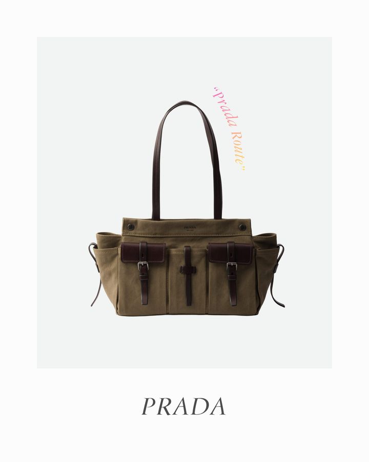 実用的なポケットを大胆にデザインとして取り入れた、「プラダ」の新ライン“プラダ ルート”。ミリタリーキャンバスとレザーディテールが絶妙に響き合い、今の気分にフィットする。容量たっぷりな収納力を備えながら、「プラダ」らしい知性的なエレガンスが漂う。