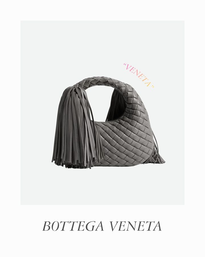 メゾンの名を冠し、創業以来ブランドのアイデンティティを象徴する“ヴェネタ”が、ルイーズ・トロッターの手でベイビーサイズになって新たに登場。シームレスな“イントレチャート”のしなやかなレザーが生み出すころんとしたフォルムに、ドラマティックに広がるフリンジが遊び心を添える。「ボッテガ・ヴェネタ」の神髄が、このサイズに凝縮されている。