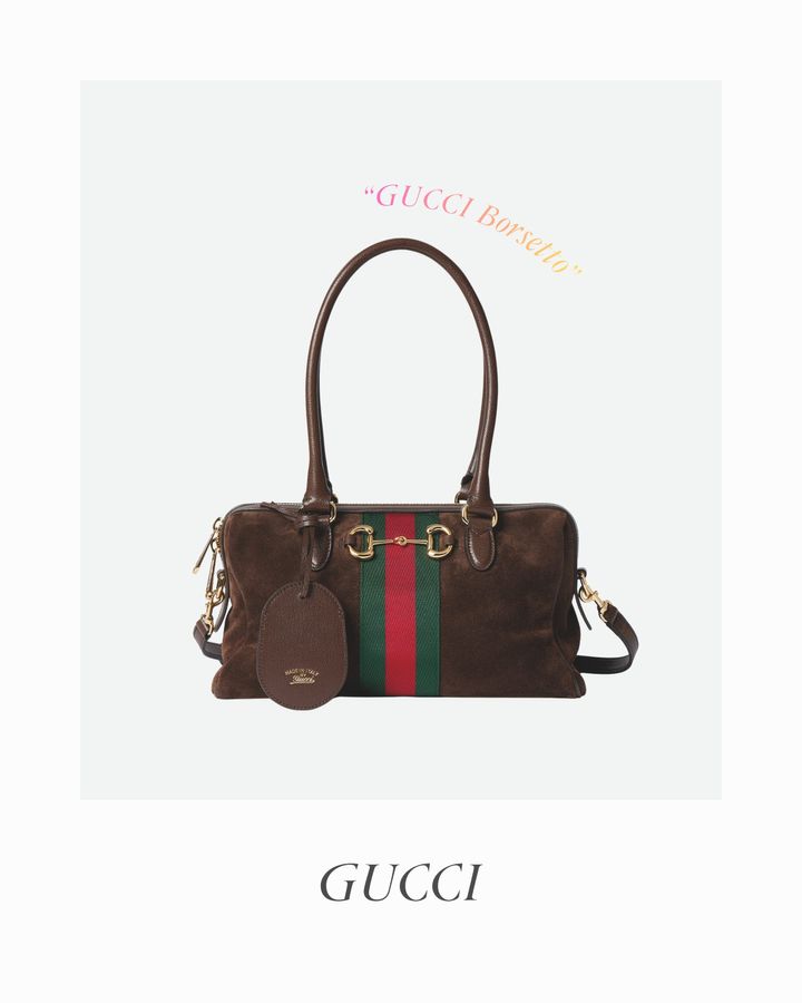 イタリア語でバッグを意味する“borsa”とホースビットを意味する“morsetto”を掛け合わせた造語が名前の由来という、デムナらしい遊び心が光る“グッチ ボルセット”。ブランドを象徴するホースビットとウェブ ストライプが持つヴィンテージのレガシーを、コンテンポラリーに再解釈した新たな定番として注目の一作。肩がけしやすいロングハンドルに加え、ショルダーストラップで斜め掛けにも対応する実用性も魅力。