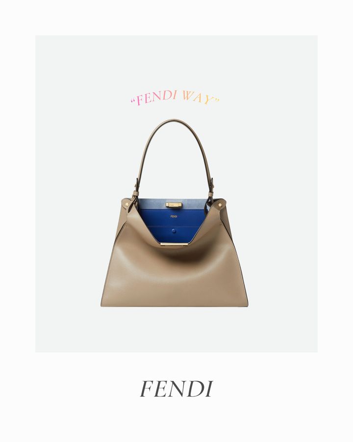 2026年春夏コレクションのランウェイで初披露された“フェンディ ウェイ”。台形のシンプルなフォルムにたっぷりの収納力を備えた、気負わないラグジュアリー感が魅力のホーボーバッグ。外側のダブグレーのカーフレザーと内側のライトブルーのスエードが作るバイカラーのコントラストが日常のエレガンスを引き立て、現代女性のあらゆるシーンに寄り添う。