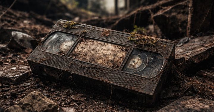 古びた廃墟の床に転がる、泥まみれのVHSテープ。