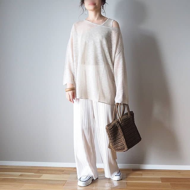 透け感のある「シアーニット」は気温が高くなってからが本番。リネン・ナイロン・ポリエステルなど清涼感のある素材が多く、5月~6月頃の初夏まで着られます。