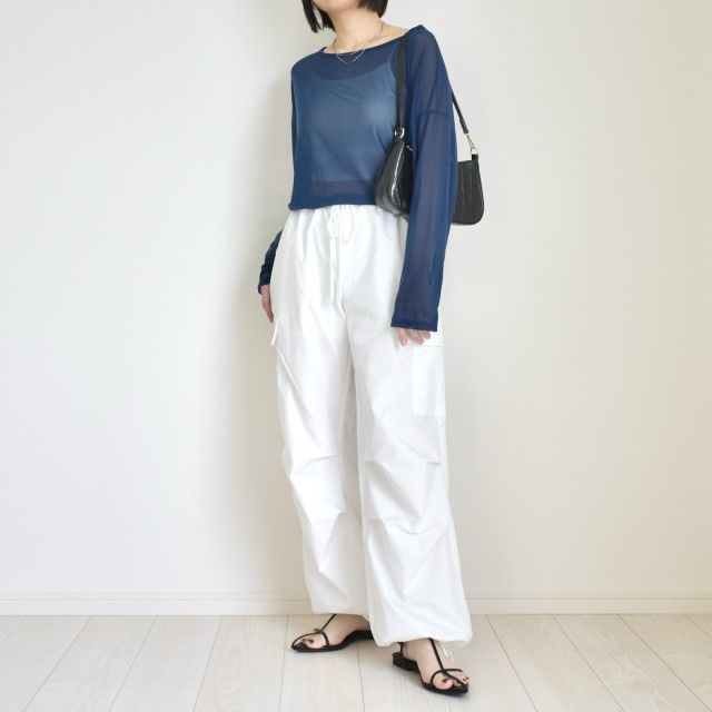 初夏まで着られる「シアーニット」