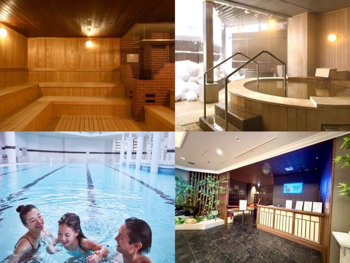 室内プールではサップヨガクラスも(要予約)。温泉やサウナ、スパルームもあるから、ゆっくりリラックスタイムを過ごすことも可能。※トリートメントメニューは別料金