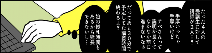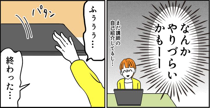 結局ディスカッションする時間はほとんどなく、講師がまとめの一言を言っただけで終わりました。「それではみなさん、また1ヶ月後に!」そう言われて画面がふっと消えた瞬間、私はひとり取り残されたような感覚になって呆然としてしまいました。