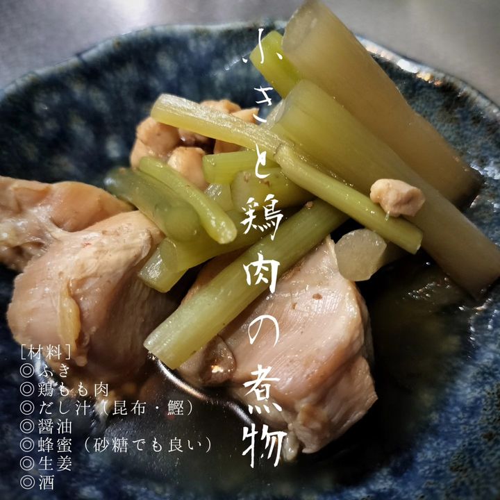 ふきが手に入ったら煮物にして、豊富な栄養を丸ごといただきましょう。「ふきと鶏肉の煮物」は、どこかホッとする和風おかず。昆布と鰹の合わせだしと鶏もも肉の旨みが、ふきの中までじゅわっと染み込みます。