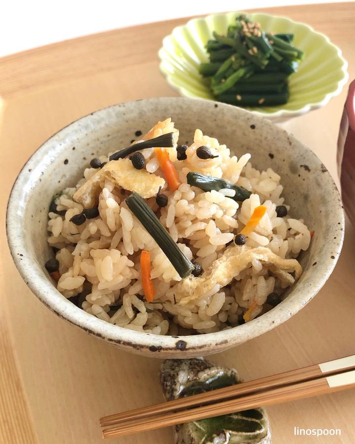 春を代表する山菜「わらび」は、炊き込みごはんにして美味しさを逃さずいただきましょう。白だしと醤油のやさしい風味と油揚げの旨みが、お米一粒一粒にじんわり染み込みます。