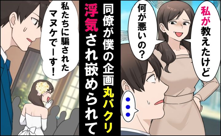僕は反論することもなく、彼女の言葉を淡々と受け流していました。するとその態度が気に入らなかったのか、彼女はさらにヒートアップ。ついには「この人は私たちに騙されたマヌケ」と言い放ち、僕がコンペに出すはずだった企画を同僚男性に伝えて、僕を陥れたことを勝手にしゃべり始めたのです。