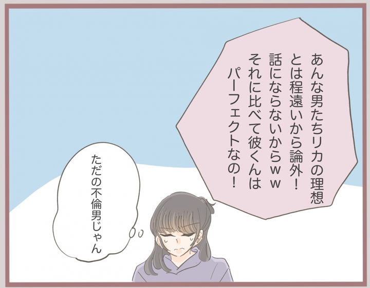 ゆいには一つ年下のフランス人形のように美形の妹リカがいて…。「あんたのやってることは不倫という違法行為」と説くゆいにまったく悪びれないリカ。「他の人を探しな」と言っても、どうしても今付き合っている不倫彼がいいんだとか…。