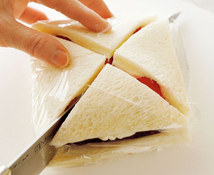 3. プロの切り方で断面美!『あんことチーズの苺サンド』カフェ風サンドはお花見にも