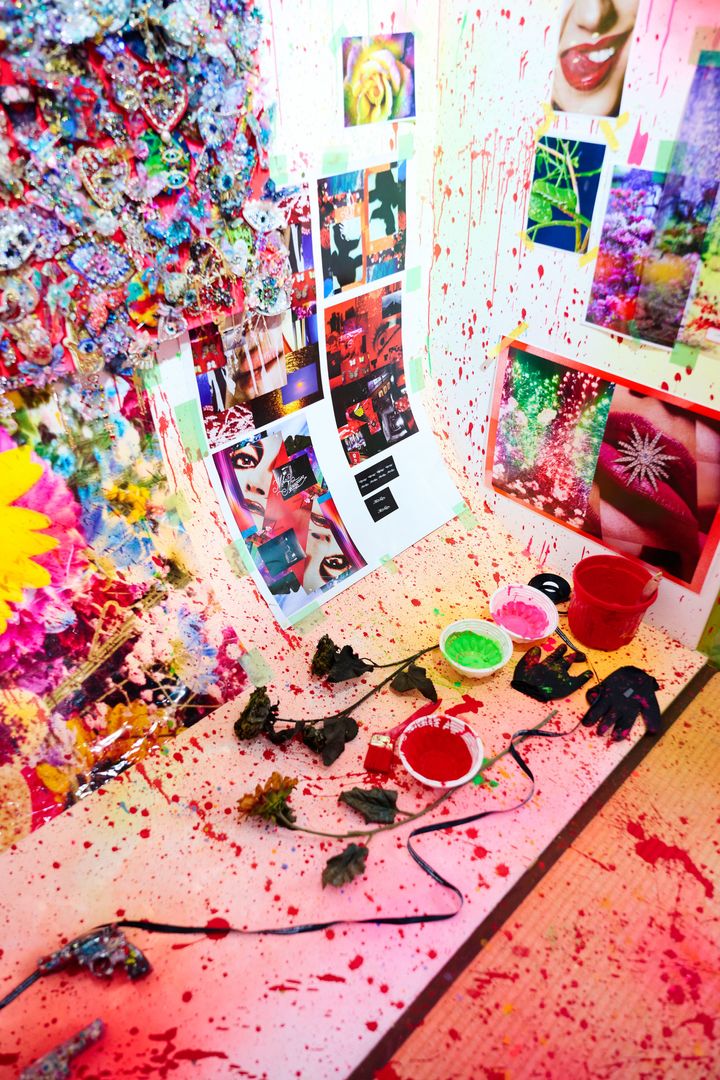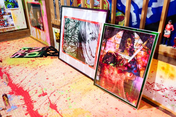 展示もまた、どう見せるか事前に決めないで始めました。普段はPC上で3D空間を作ってしっかり構築するんですが、今回は現場に作品をバサッと持ってきて、「えーどうしよう、ペンキだらけにしちゃえ!」なんて言いながら、その場の感覚で作っていったんです。だから、会場自体がひとつの作品みたいになっています。通常なら「コンセプトをどう伝えるか」や「集客」も頭の片隅に置きながら作りますが、今回は自分の中の初期衝動だけで、「作りたいから作る」「作らずにはいられない」という溢れ出るエネルギーだけにフォーカスしました。