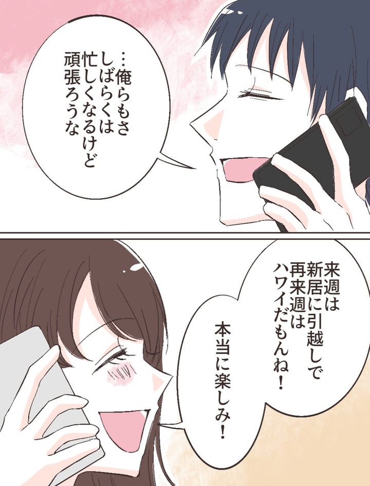 そして、「・・俺らもさ、しばらくは忙しくなるけど頑張ろうな」修吾さんにそう言われ、「来週は新居に引っ越しで、再来週はハワイだもんね!本当に楽しみ!」と、いよいよやって来た結婚式に思いを馳せるのでした。