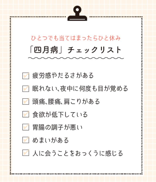 ひとつでも当てはまったらひと休み! 四月病チェックリスト
