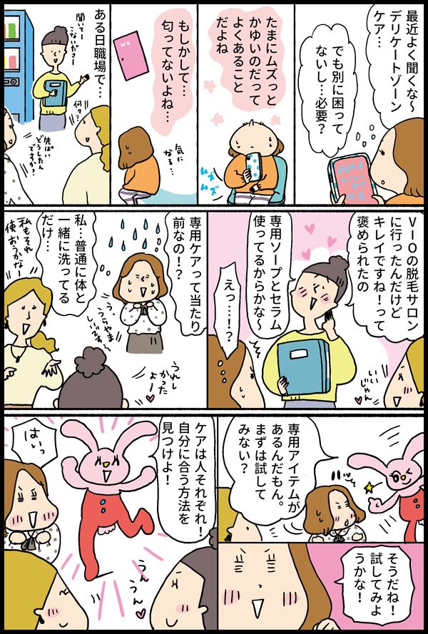 今回のテーマは「デリケートゾーンのケア」。デリケートゾーン専用のケアアイテムもずいぶん多く目にするようになりましたが、みなさんはどんなケアをしていますか?