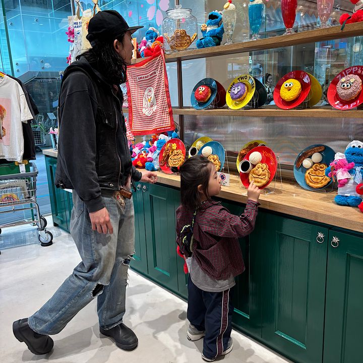 私も夫も小さい頃になんとなく見ていたセサミストリート。子供たちはそんなに触れ合う機会がなくほぼ初見でしたが、かわいいキャラクターと色使いに大興奮!あれもほしいこれもほしいと目をキラキラさせて歩き回っていました!