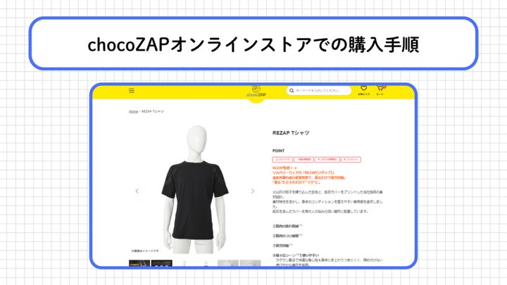 購入手順はシンプルで、chocoZAPオンラインストア(https://chocozap.shop/)にアクセスし、希望のサイズとカラーを選んでカートに追加するだけです。