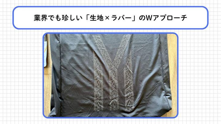 1.業界でも珍しい「生地×ラバー」のWアプローチ