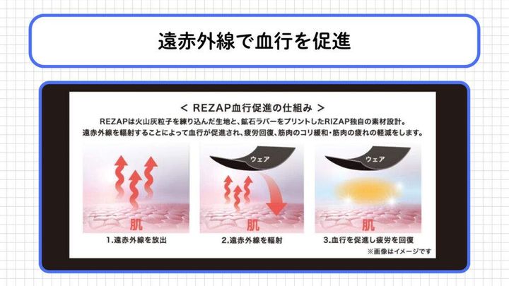 REZAPを着用することで血行が促進されれば、身体の疲労回復が期待できるというわけですね。