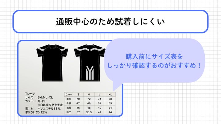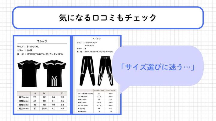 サイズ選びに不安がある場合は、サイズ表を事前にしっかり確認しておくことが最善の対策です。