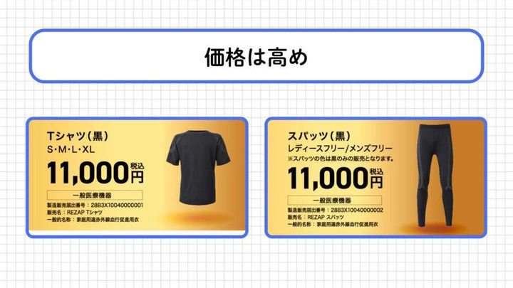 価格は各11,000円(税込)と中間帯に位置しており、独自素材と医療機器としての信頼性を考慮すると、十分に検討する価値のある製品です。