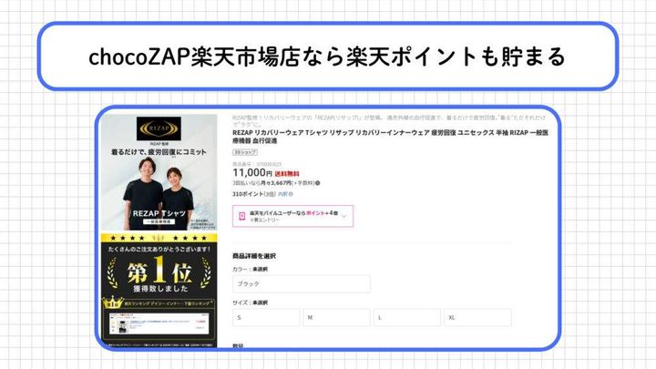 楽天市場でもchocoZAP公式ショップが出店しており、REZAPを購入できます。