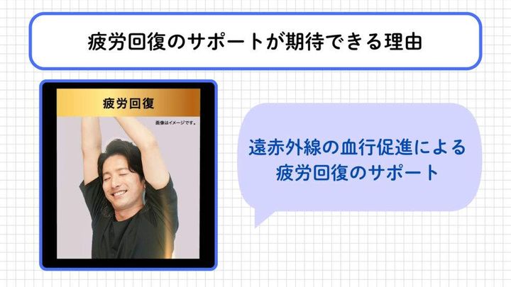 遠赤外線の血行促進により、疲労回復をサポートする効果が期待できます。