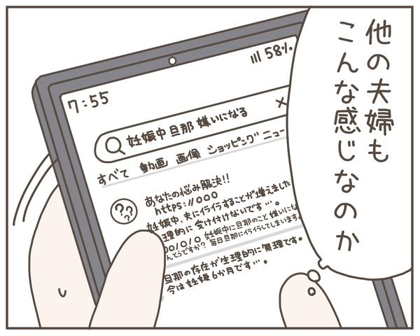 妊娠をきっかけにスキンシップが減り、そのまま離婚に向かう可能性もある…ネットで情報収集した夫は、最悪の事態だけは回避せねばと考えます。そこに、妻が帰宅して…!?