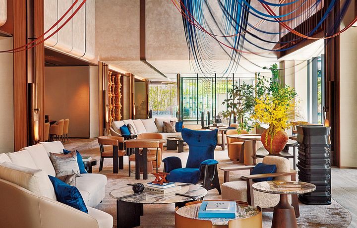 天井が高く、ゆったりとした雰囲気のロビー。併設の「デュシット ギャラリー」では、アフタヌーンティーが好評です。 Hearst Owned