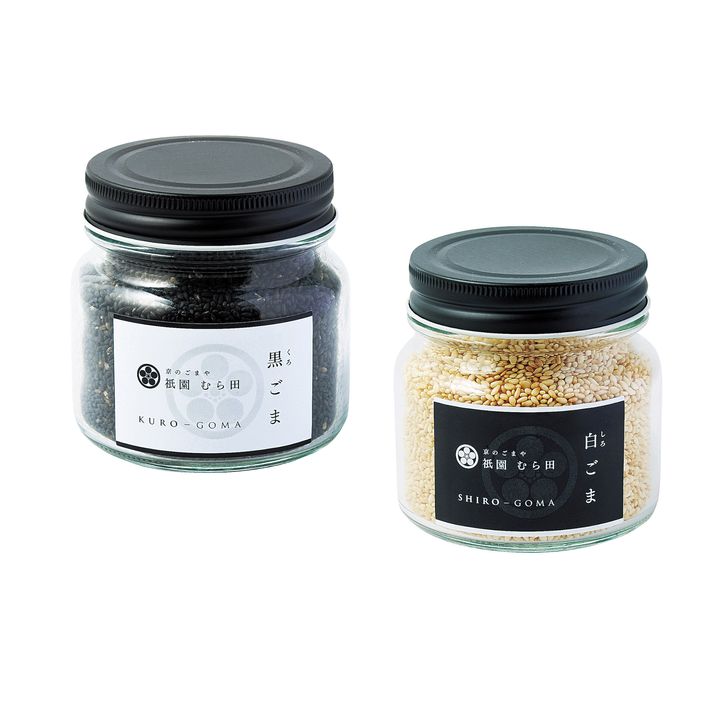 「煎り 黒ごま」115g ¥918や「煎り 白ごま」115g ¥874など看板商品のほか、鰹の削り節、しぐれ煮といった和の食材を扱っています。 Hearst Owned