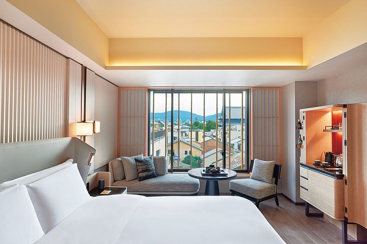 市街地の景色が楽しめる「プリミエルーム」。連泊にもぴったりの寛ぎの空間を提供しています。 Hearst Owned