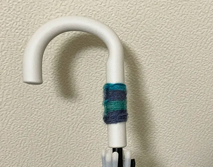2. 外出先の傘立てで見失いがちなビニール傘 余った毛糸を輪ゴム、ヘアピンで巻きつけると? 簡単でおしゃれなアイディアに挑戦