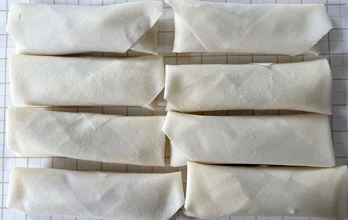 そんな『皮がしなしな問題』を解決するには、春巻きの皮を2枚重ねにして作るのがおすすめ!