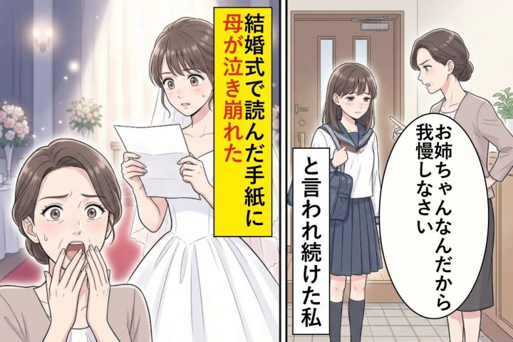 「お姉ちゃんなんだから我慢しなさい」と言われ続けた私→結婚式で読んだ手紙に母が泣き崩れた
