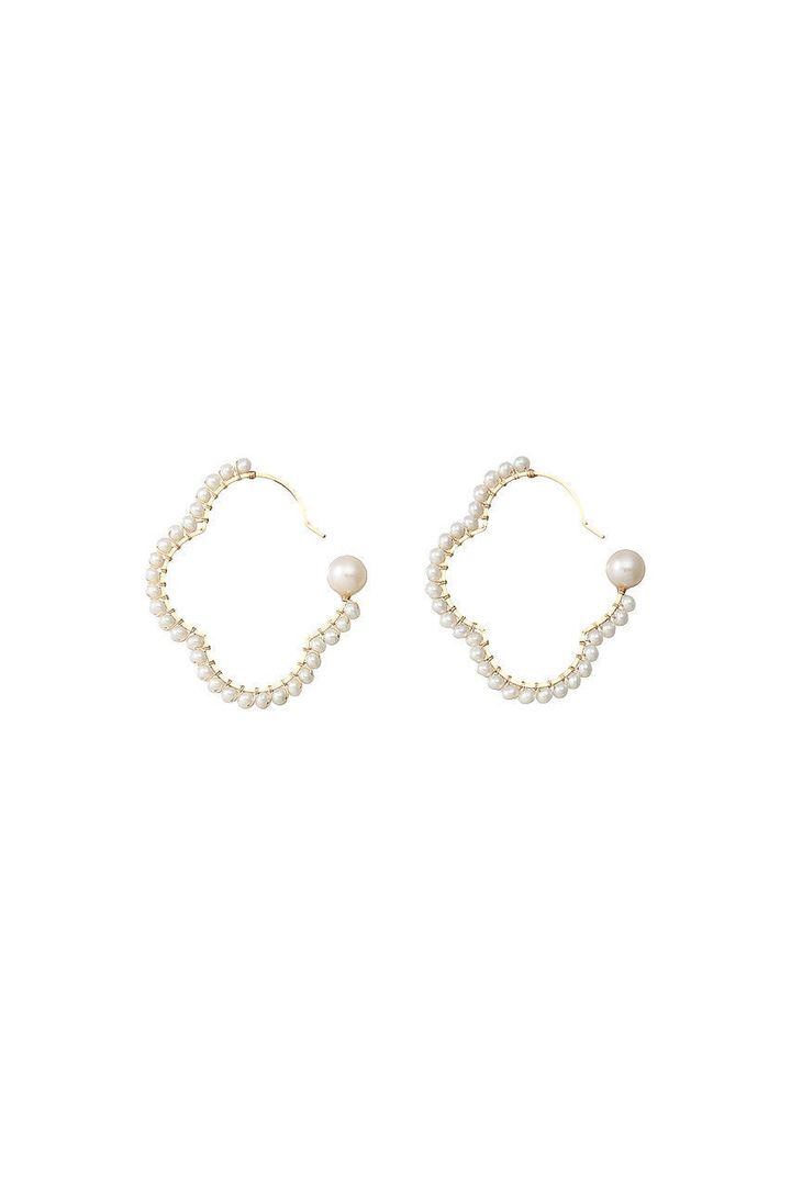 ナチュラリ ジュエリ 【ELLE SHOP限定】オーバルフラワー巻フープ パールピアス