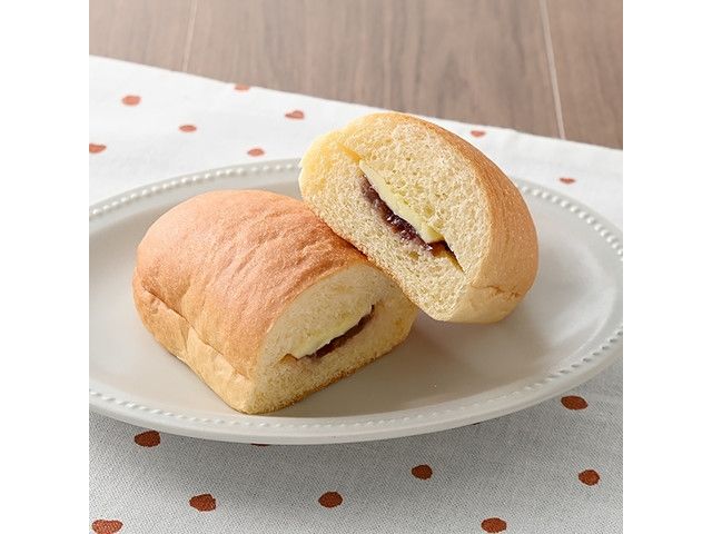 生クリームを使用した口どけの良いブリオッシュ生地のコッペパンに、つぶあんとマーガリンをサンドしました。