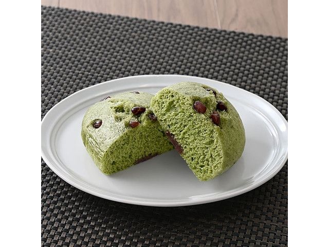 もちっと食感のよもぎ風味の生地に、粒あんと小豆かのこを合わせて蒸し上げました。
