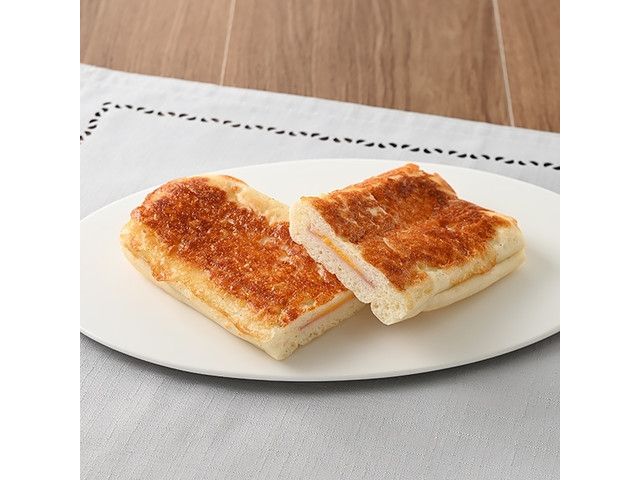 もっちりとした食感のパニーニに、チーズクリーム、ハムを包み、チーズをトッピングして焼き上げた惣菜パンです。