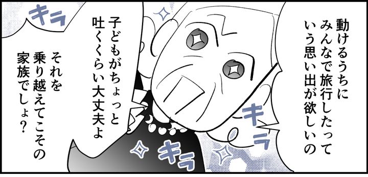 つぎの連休に車で旅行に行きたいと言ってきた義母。しかし、ミユは本当に車移動がムリなので、私が申し訳なさを込めて断ると、義母の顔からすっと笑顔が消えました。「病気の私」という最強のカードを義母に出されたら、たとえ私が何を言っても不義理な嫁の暴論にされてしまう……そう思えて仕方がないのです。