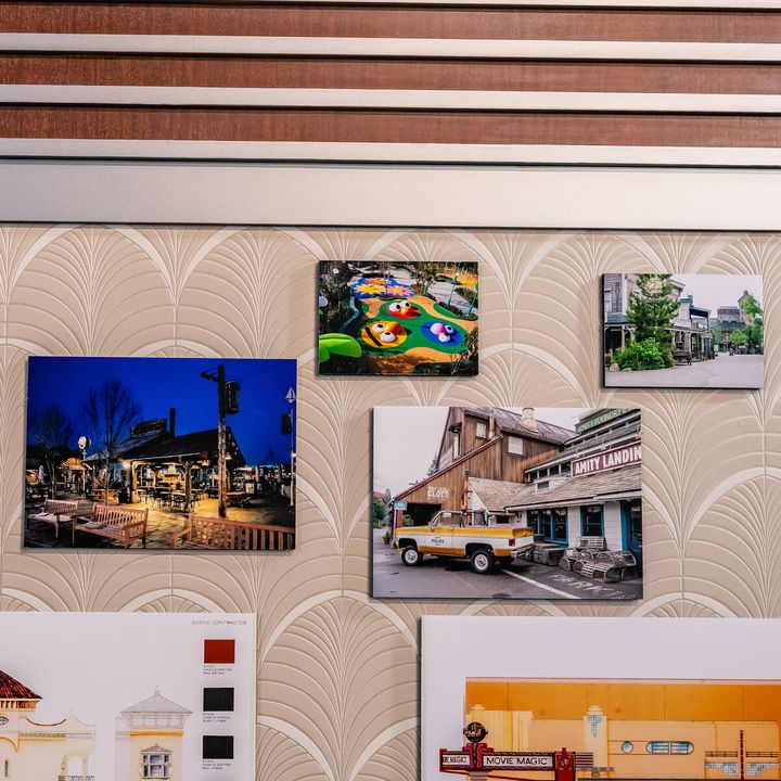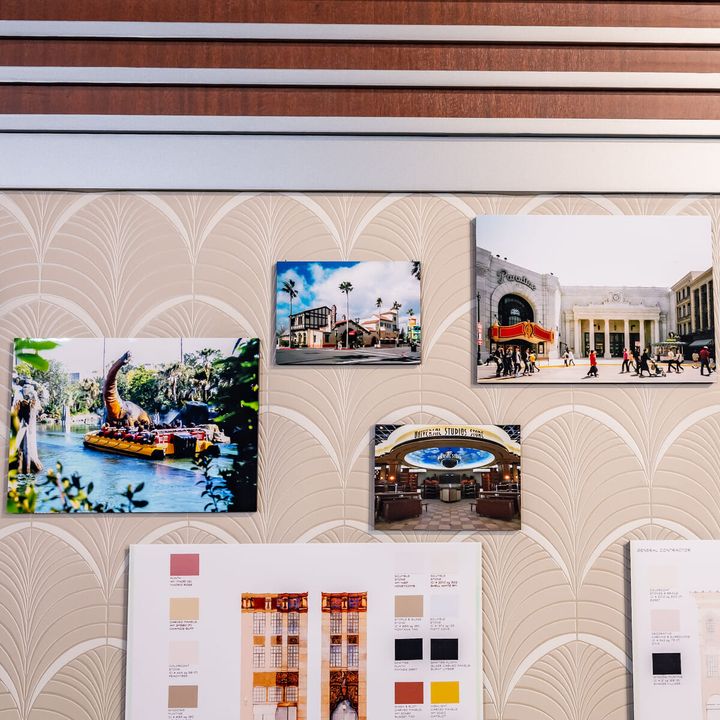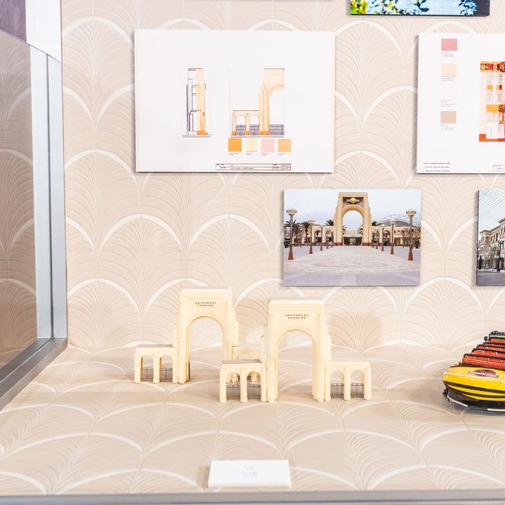 展示では、実際の建物の写真と見比べることで、細部まで徹底されたユニバーサル・スタジオ・ジャパンの景観づくりのこだわりを実感できます。
