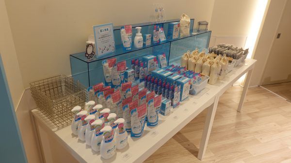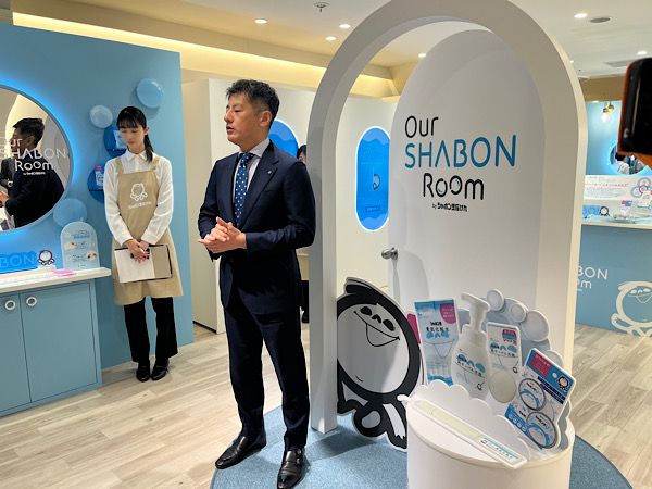 初のポップアップショップ出店にあたり、今回のポップアップの世界観を象徴するフォトスポット「ルームドア」の前で森田社長にご説明をいただきました。半世紀以上に渡り蓄積されてきたノウハウを最大限に集約し、長年ご要望の多かったスキンヘルスケア部門が2024年3月に誕生。「肌はずっと積み重ねていくものであり、環境もまたずっと守り続けなければならないもの。無添加せっけんにこだわり続けたシャボン玉石けんが作る、肌本来の力を発揮できるようなシンプルなラインナップを、若年層の方々にもこのポップアップショップを通じて関心を持って欲しい」という願いを話されました。