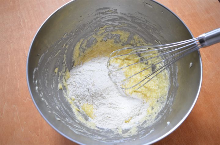 4. 卵をひとつずつ入れ、その都度よく混ぜる。